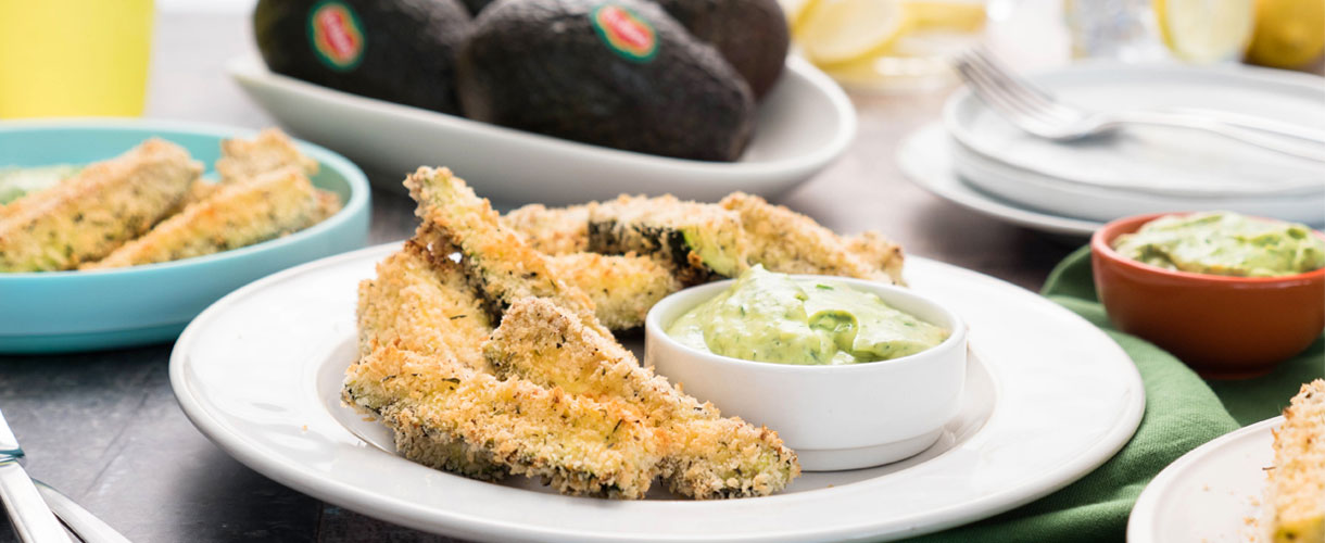 Frites de courgettes croustillantes avec avocat en sauce ranch