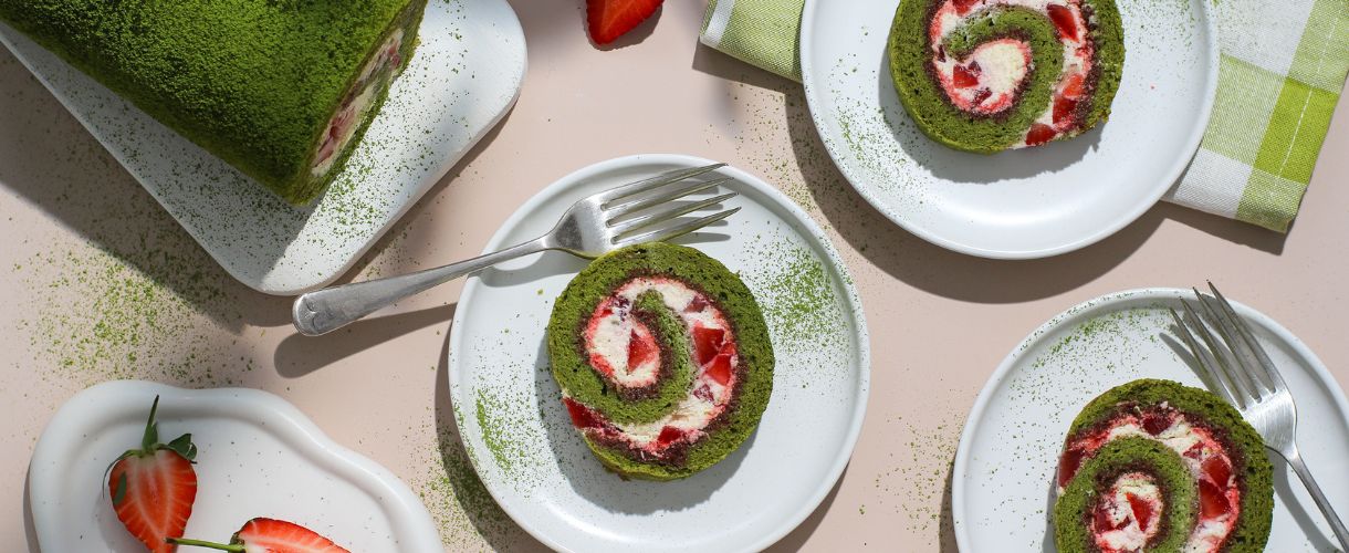 Matcha Swiss Roll with a British Strawberry & Cream Filling