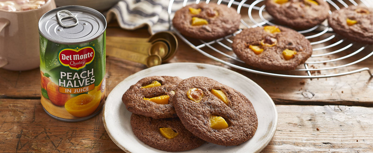 Amerikaanse chocoladekoekjes met perzik en marsepein